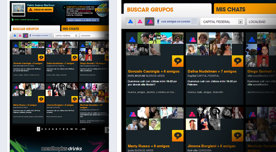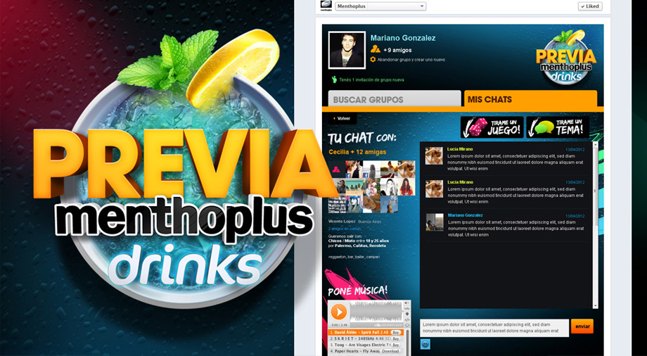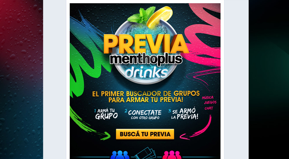 A partir del lanzamiento de los nuevos Menthoplus Drinks, creamos la primera app en facebook para encontrar tu previa. De esta manera logramos que la marca ingresara en nuevo terreno donde el alcohol esta permitido y los usuarios podían generar encuentros en la vida real con otros grupos de amigos.
